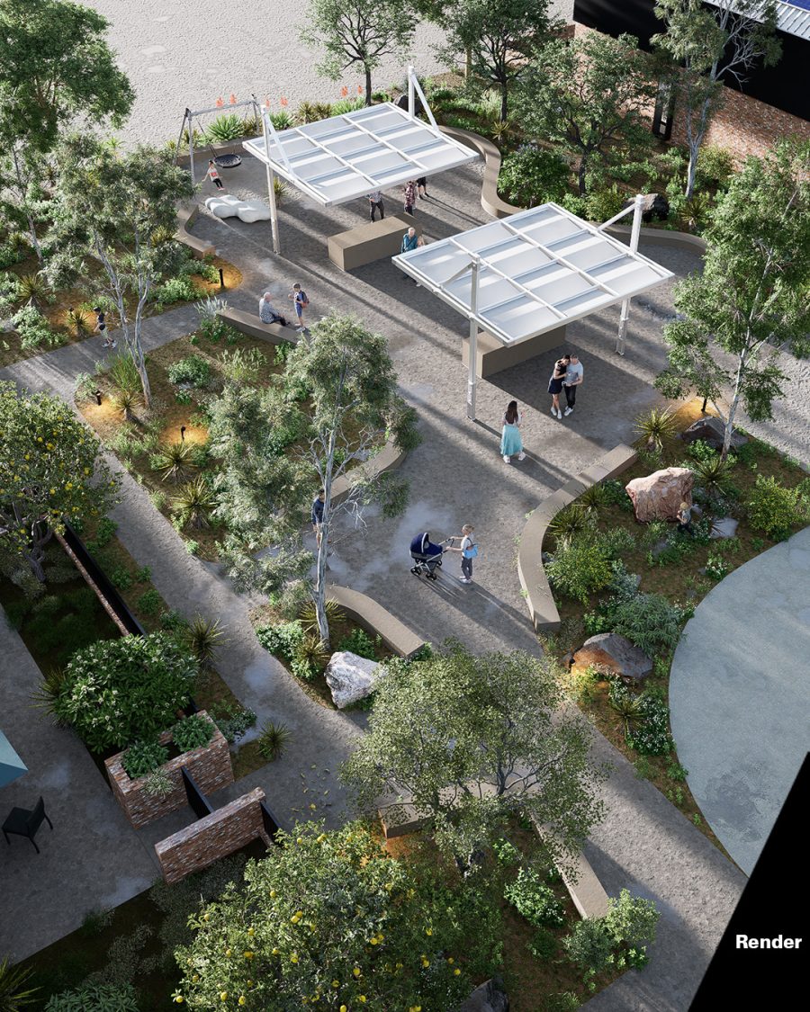 The homes are arranged in a breezeway configuration to optimise cross-ventilation and thermal performance. Outdoor spaces are calibrated for tropical conditions, supporting an open, climate-responsive lifestyle. At the heart of the site, a landscaped communal hub anchors the development; promoting social connection as a core element of successful regional living.