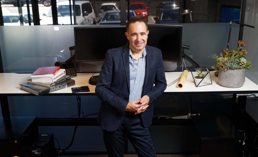 It seems fitting that the man drawing up the plans for many of Perth’s new wave of high-rise buildings prefers to work standing up.