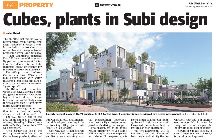 The architect behind the Iconic Scarborough twin towers and Edge Visonary Living’s Botanical in Subiaco is working on a niche, heavily design-oriented project in Carter Lane, Subiaco.