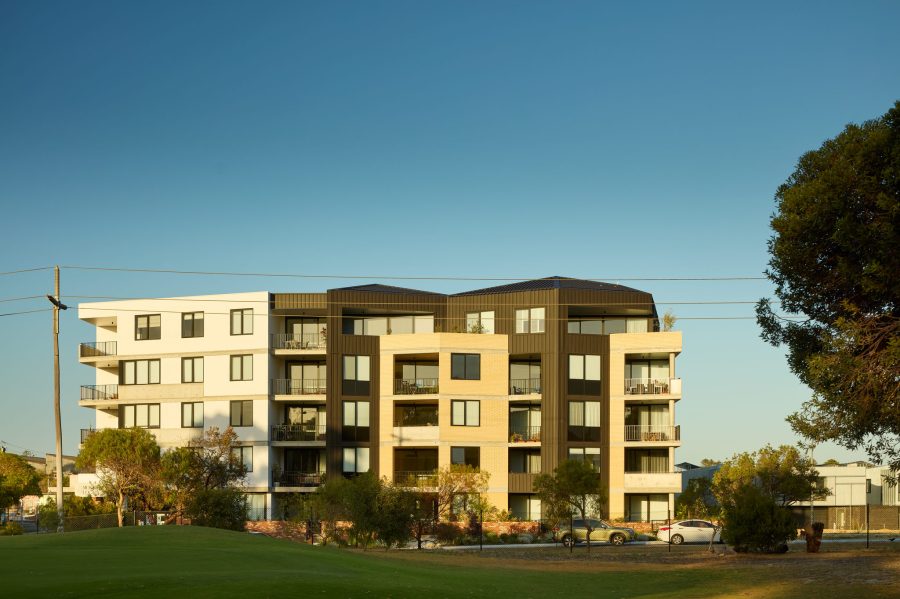 Designed by Hillam Architects, the four- to five-storey mixed-use apartment building, named Montreal Commons, is the first building to be approved for Development WA’s Knutsford East Village.