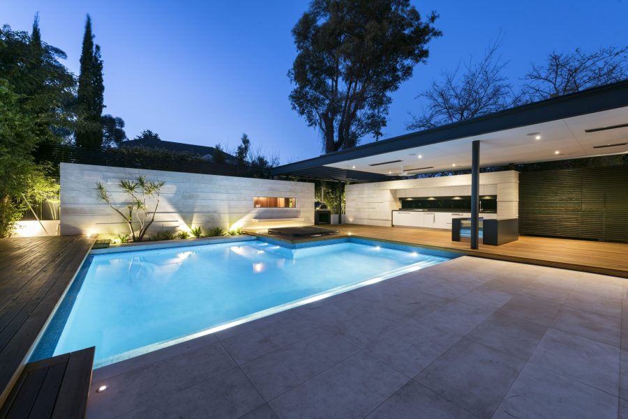 From the architect. Situated in the established inner Perth suburb of Dalkeith, the full potential of an existing 1980s brickwork house was realised by a series of dramatic alterations and additions. The expansive 1500sqm site was completely transformed to include a new driveway, gatehouse and guest wing, while the large rear garden is utilised to include a new pool, generous cabana and outbuilding.