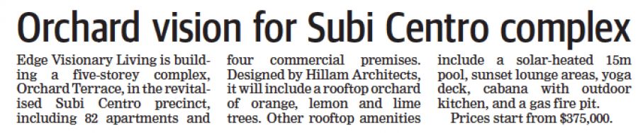 Edge Visionary Living is building a five-storey complex, Orchard Terrace, in the revitalised Subi Centro precinct, including 82 apartments and four commercial premises.