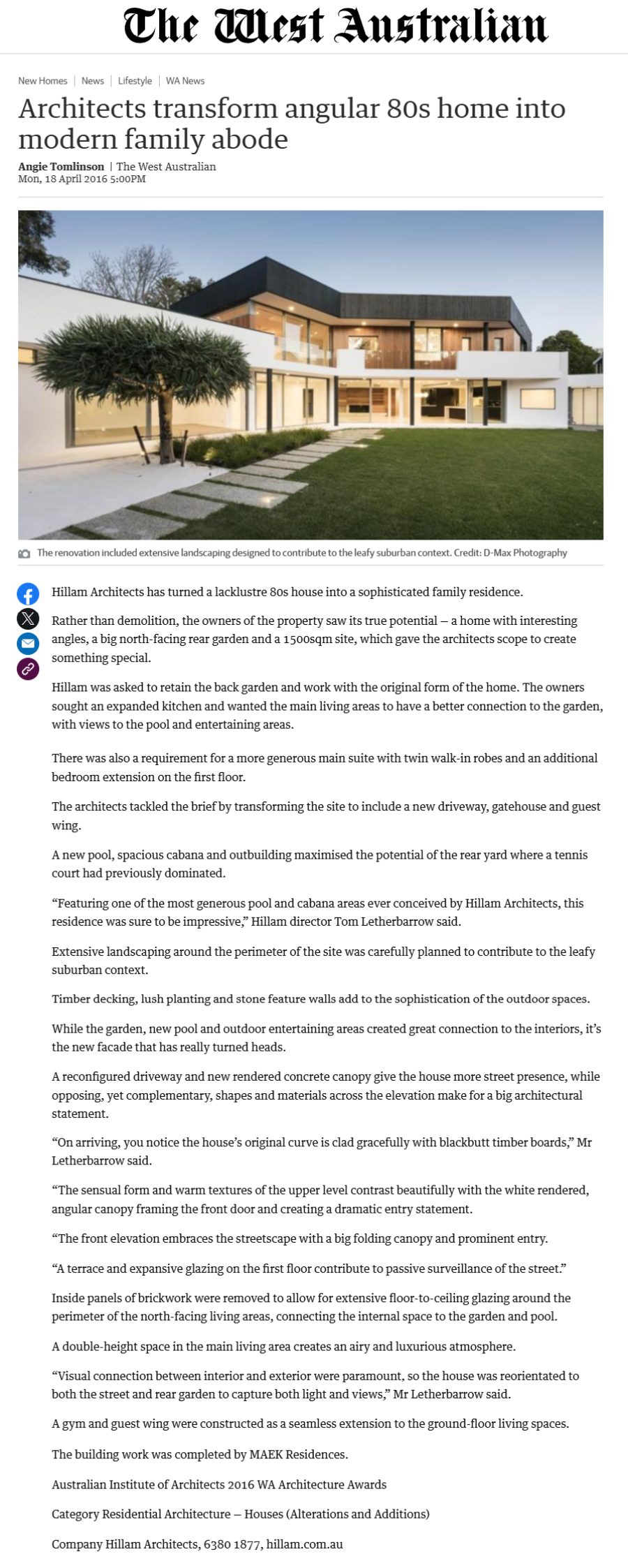 The West Australian: Dalkeith Residence (Alterations and Additions)