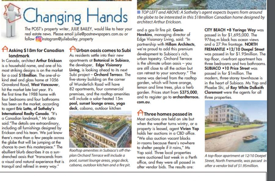 As residents settle into their new apartments at Botanical in Subiaco, the developer, Edge Visionary Living, is looking ahead to its next Subi project – Orchard Terrace.