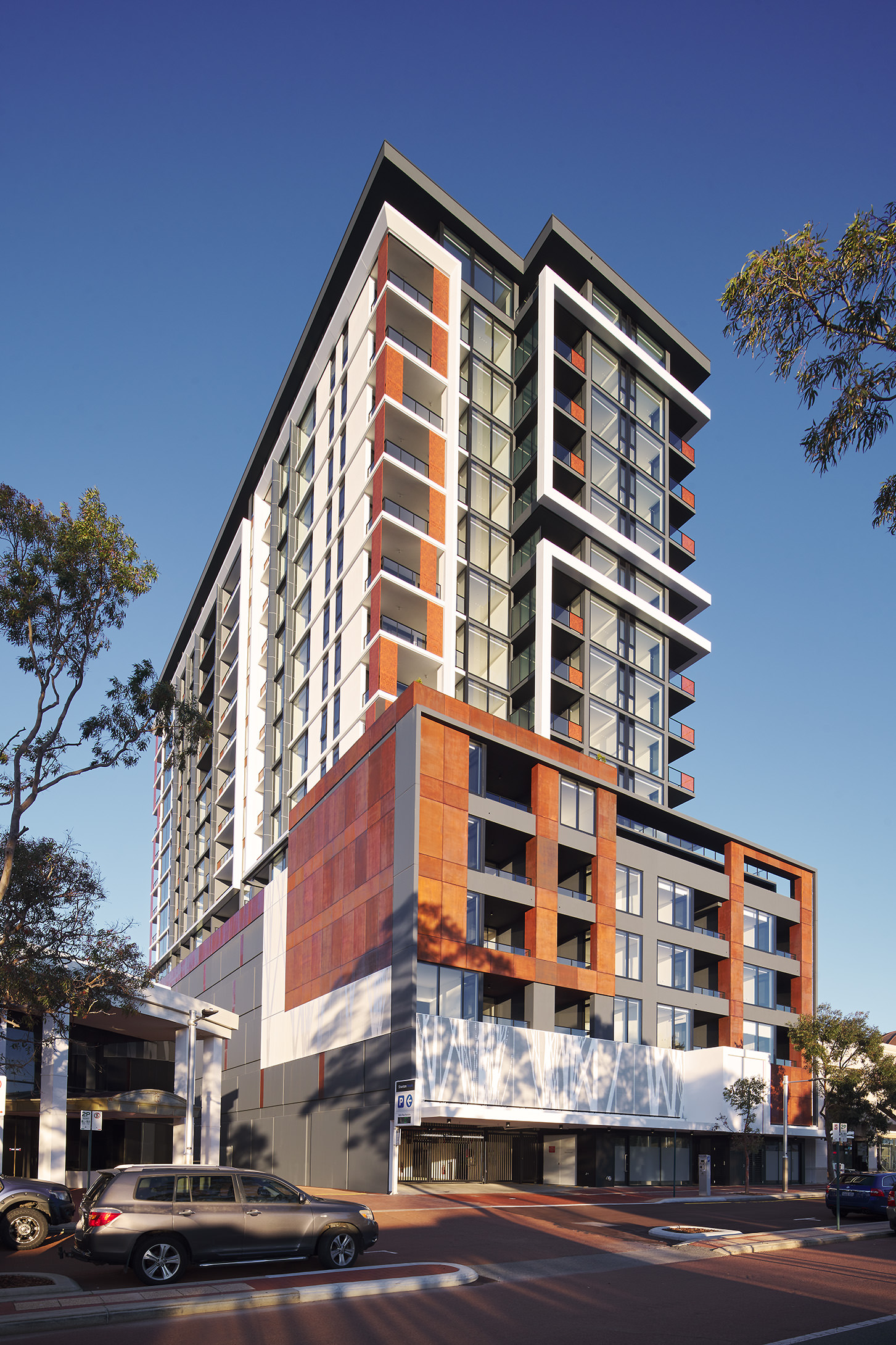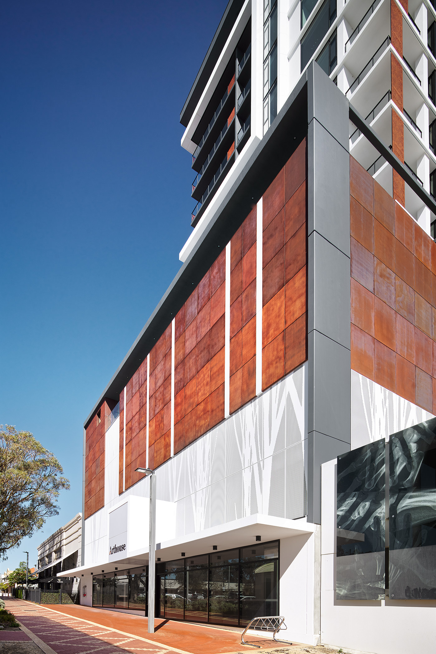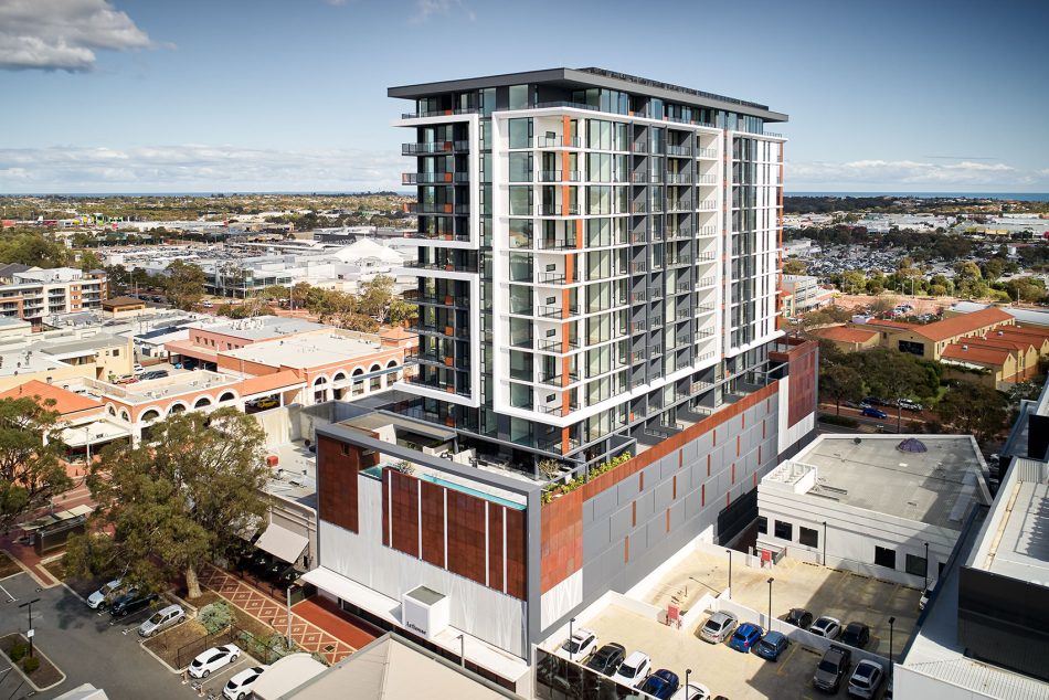 To complement the exciting and evolving culture of Joondalup, Arthouse’s architectural presence is a work of sculptural art. Externally, rich materials, expansive glazing and wrapping masonry elements accentuate the articulation of the seventeen-storey tower.