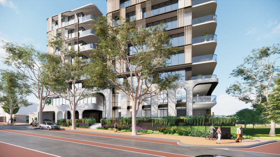 Large balconies, undercover and open outdoor spaces, increase solar access and amenity for the residents. The generous amenities for the development are proposed on the North to North – West side of the building with extensive planting throughout.