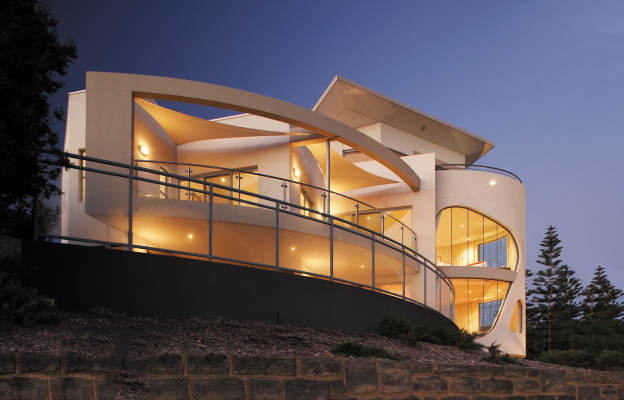 This family residence occupies an elevated corner block overlooking The Boulevard in City Beach. The site enjoys spectacular ocean views across coastal bushland to Rottnest Island and beyond.
