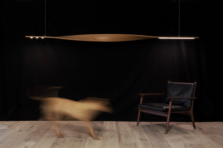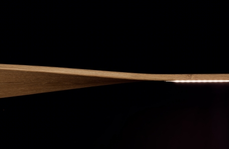 The timber now remains against its natural state, accentuating the material’s capabilities. The light embodies one delicate gesture that is simple yet exciting.