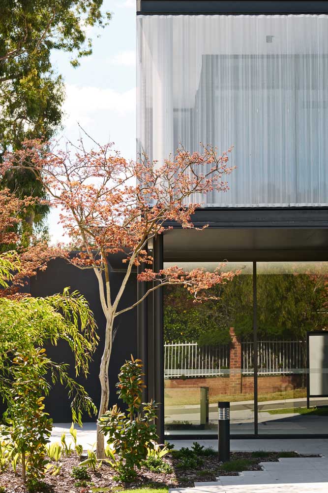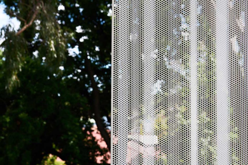 A key principle of the design is the integration of delicate, curtain-like screening on the north, east and west facades which provides a layered and nuanced interface with the external environment. Harsh direct sunlight and gusty winds are gently