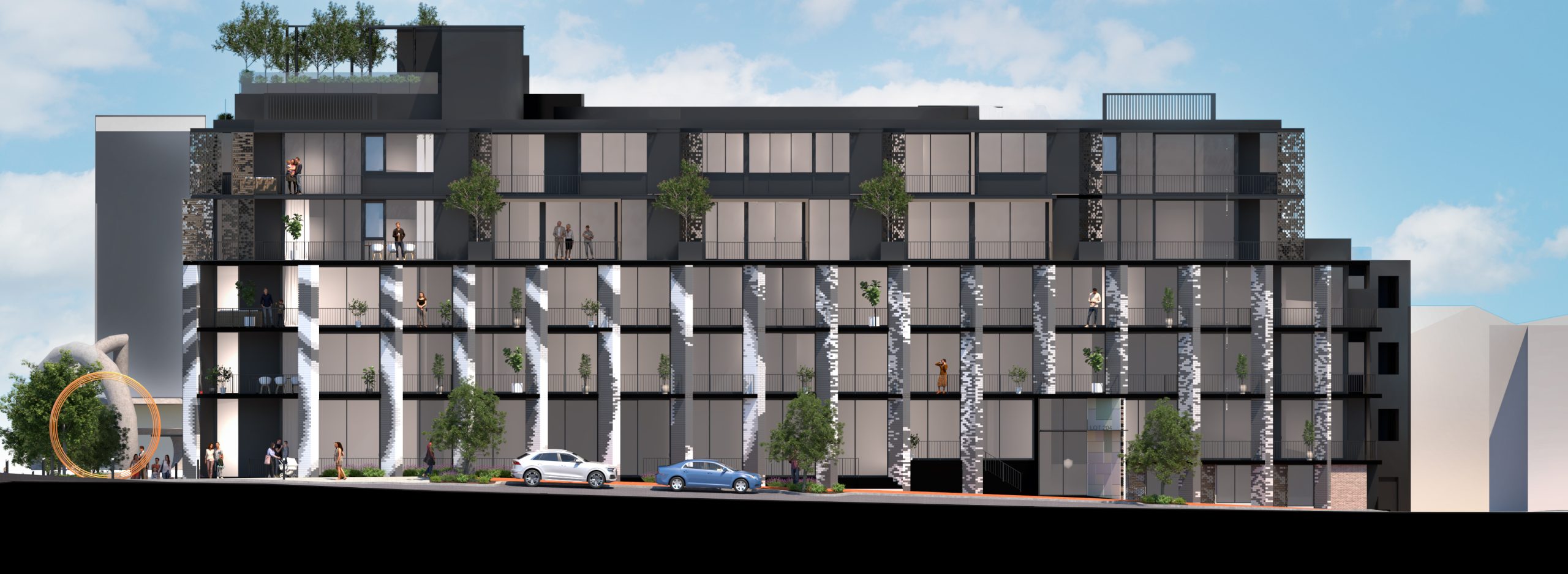 In keeping with the design principles successfully implemented by Hillam Architects at Lot 207 AFC, this design responds to the identity of the Australian Fine China precinct with a five storey mixed use residential complex.