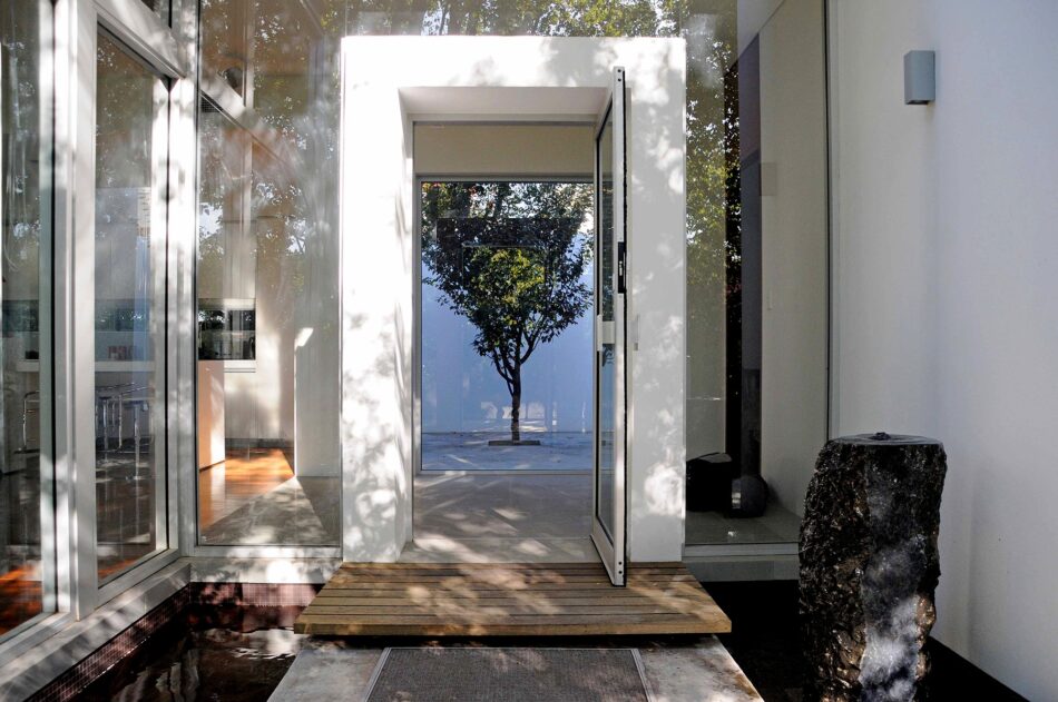 A single glass door channels views to a private central courtyard with a developing London Plane Tree as its centrepiece.