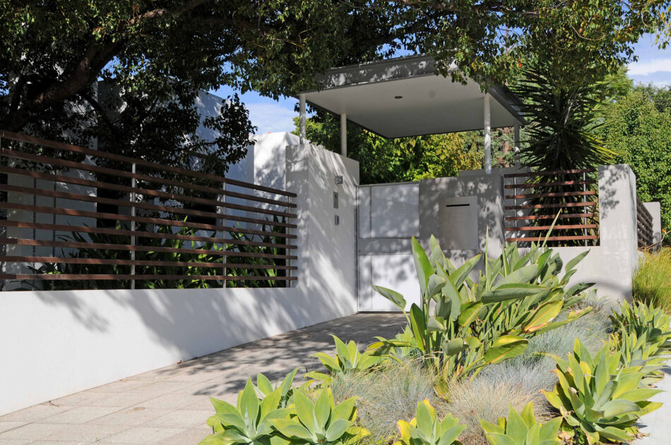 Entry is through a sleek gatehouse nestled under a canopy of green; symbolic of the residence’s connection with nature.