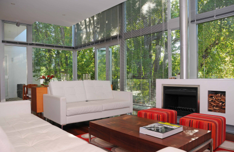 We used large and expansive glazed facades throughout the main living areas to create a sense of space, allow in plenty of natural light and provide framed views of the trees and gardens outside.