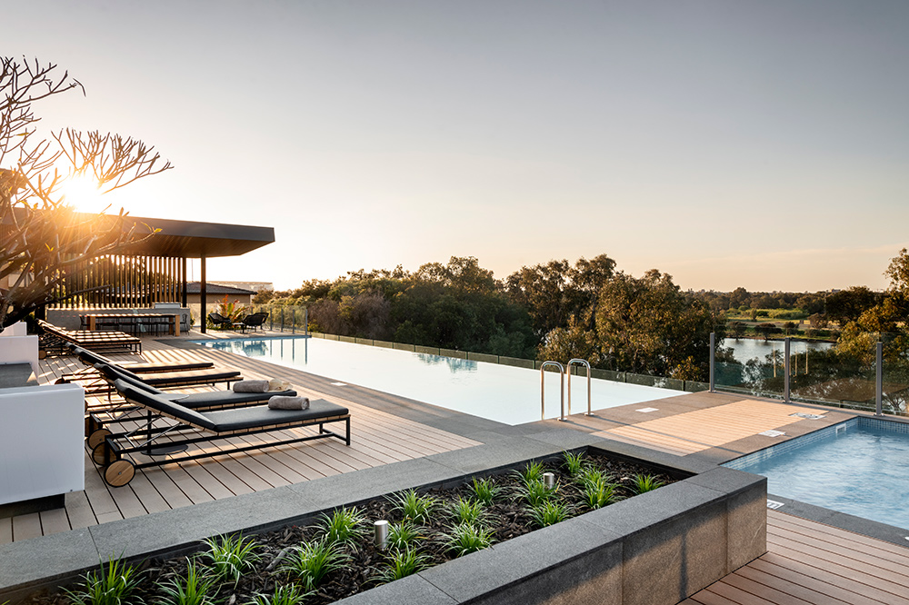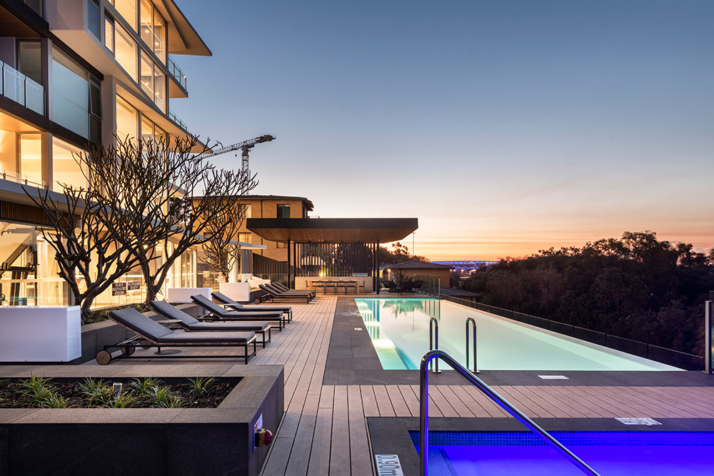 Vantage on the Swan River at Rivervale is a thirteen-storey residential tower. Developed by Edge Visionary Living in collaboration with Hillam Architects, its striking design features a distinctively-sculptured, multi-faceted façade with spectacularly bold multi-directional angles to make an architectural statement with instant street appeal.